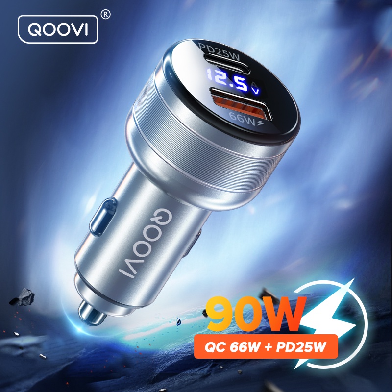Carregador USB QOOVI 65W Para Carro Tipo C De Porta Dupla 3.0 iPh Huawei Xiaomi Samsung PD Telefone Celular