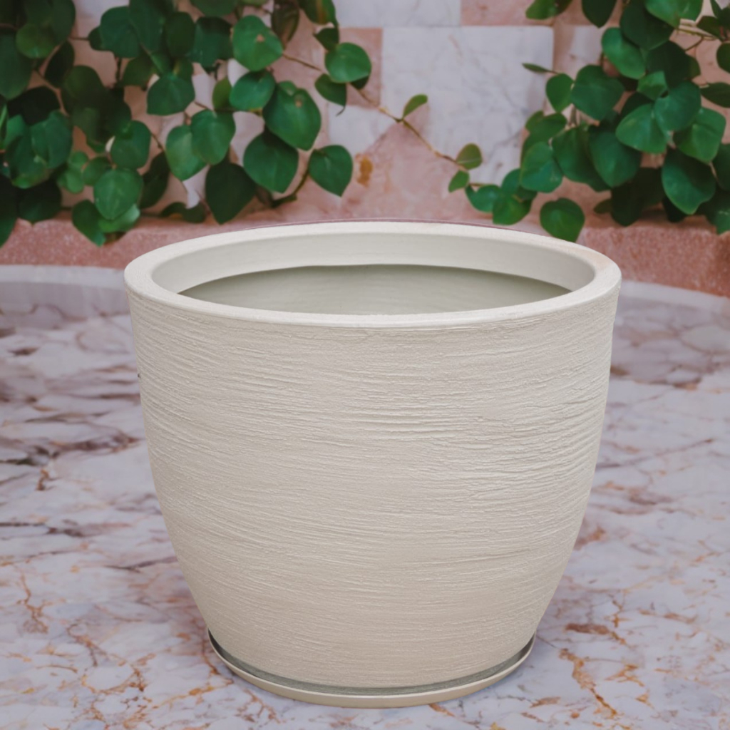 Vaso grande Para Planta Decorativo Polietileno Jardim Bojo Escovado Com Prato N4