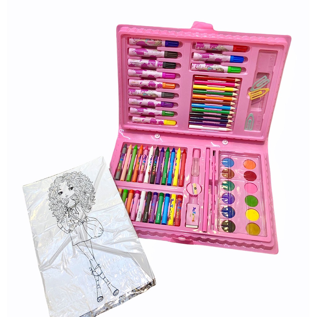 Estojo Maleta 68 Peças Infantil Canetinha Giz Lápis Criança