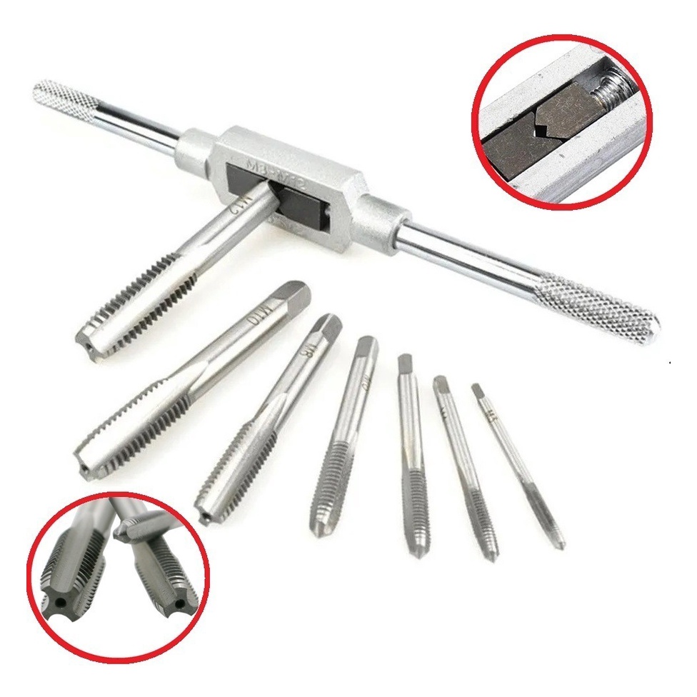 Jogo De Macho Para Fazer Rosca 8 Pças M3 M4 M5 M6 M8 M10 M12 Pra Abrir Rosca Tarraxa Cossinete