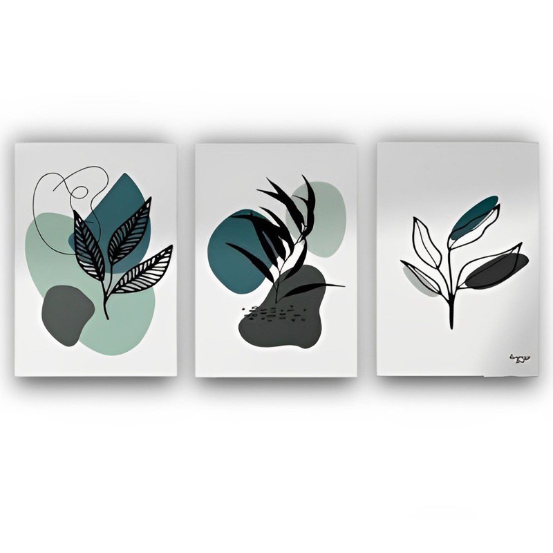 Kit Quadros Placas decorativas 3 peças 20x30 Flores Desenhos Minimalista