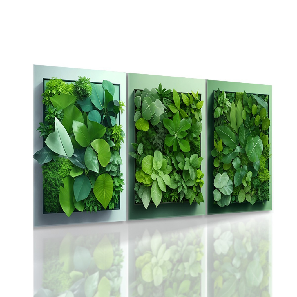 Kit 3 Placas Decorativas Trio Quadro Grande Folhas Floresta Flutuante 3d 120x60cm Para Sala Quarto Cozinha Escritório