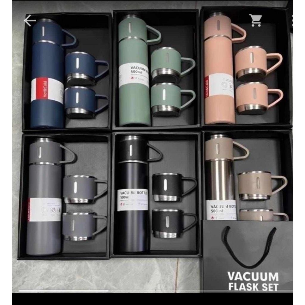 Kit Garrafa 3 Xícaras Squeeze Fosco Térmica Aço Inox Com Copo Stainless Steel Top Envio 24h
