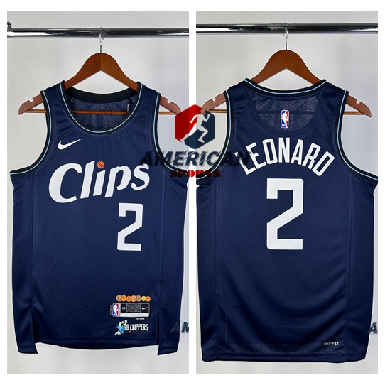 Masculino Camisa 2024NBA Los Angeles LA Clippers Kawhi Leonard Camiseta Azul Marinho Jogador De Basquetebol Jersey