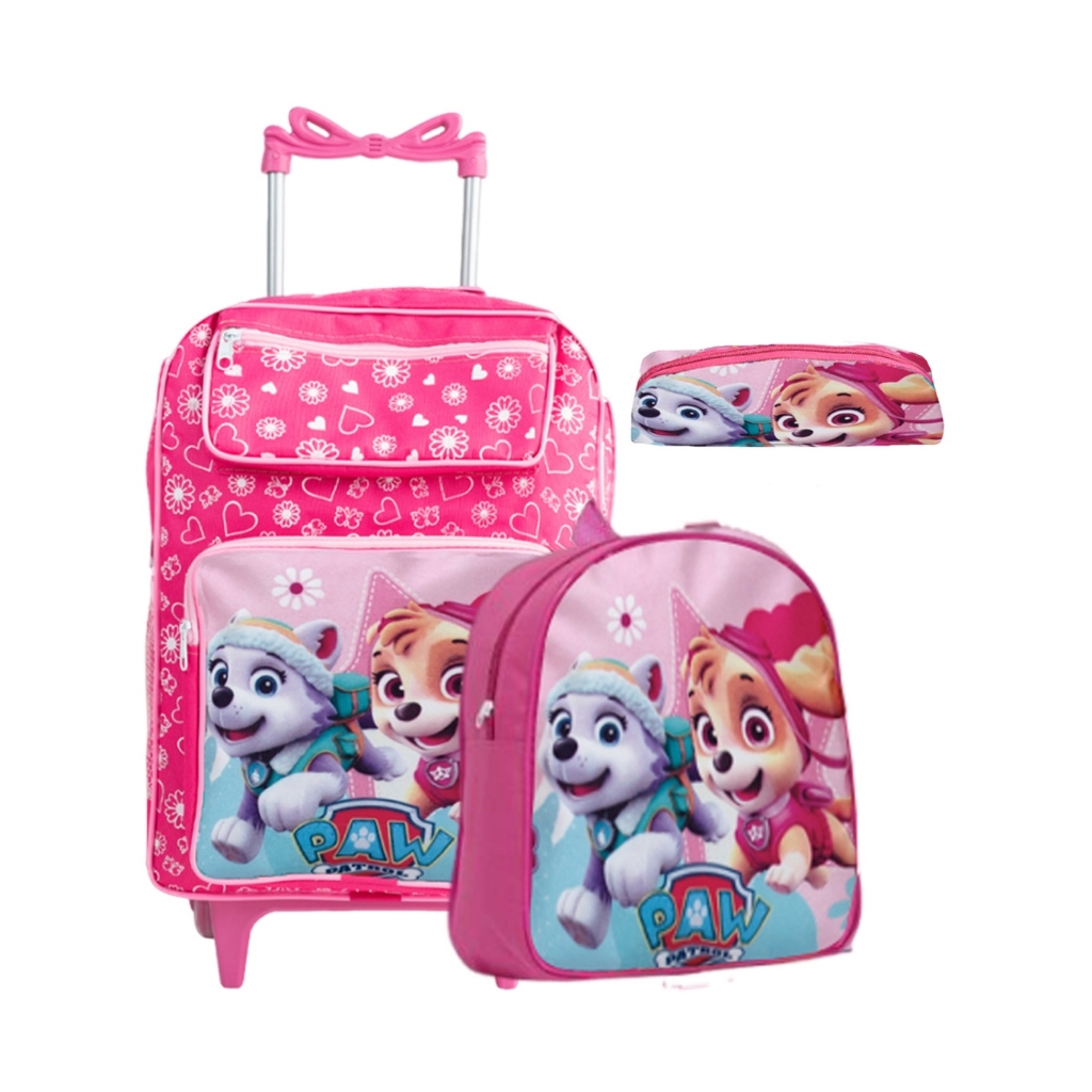 Kit Mochila Infantil Escolar patrulha canina menina de rodinhas
