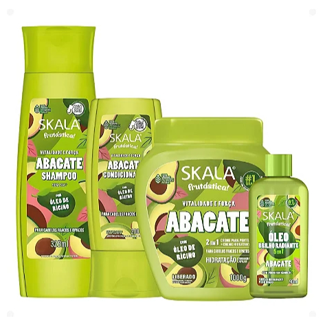 Kit Skala Frutastica Bomba de Abacate Nutrição Potão Creme 1kg + Shampoo 325ml e Condicionador 200ml + Óleo Capilar 90ml