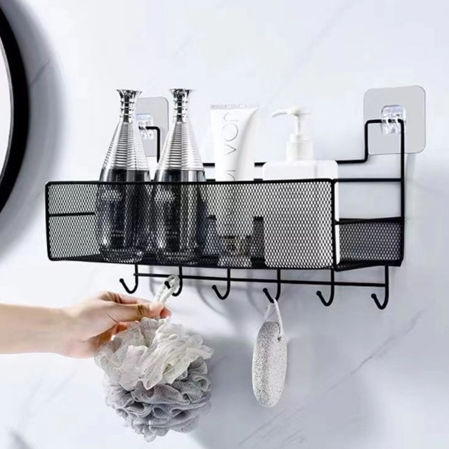 Suporte Prateleira de Shampoo Para Banheiro Cozinha com Adesivo Auto Colante Na Parede Multifuncional Organizador Com Gancho Preto ou Branco