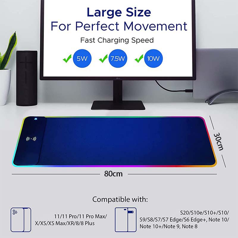Tapete de rato de carregamento sem fio 15w do jogo do rgb, tapete de rato conduzido com 14 modos de luz almofada de teclado de computador base antiderrapante de grandes dimensões