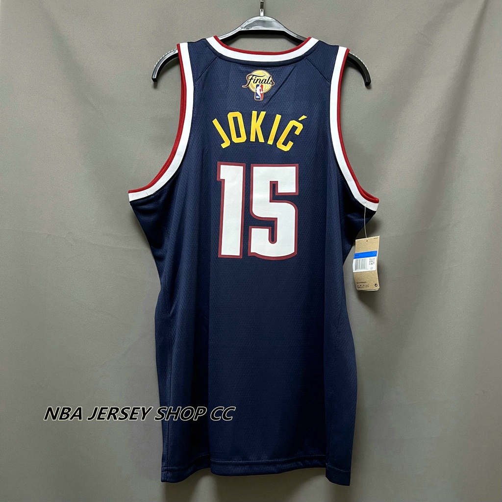 Novos Nuggets Denver Originais Masculinos Da NBA 2023 # 15 Nikola Jokic Icon Edition Jersey Navy Blue Swingman Prensado A Calor