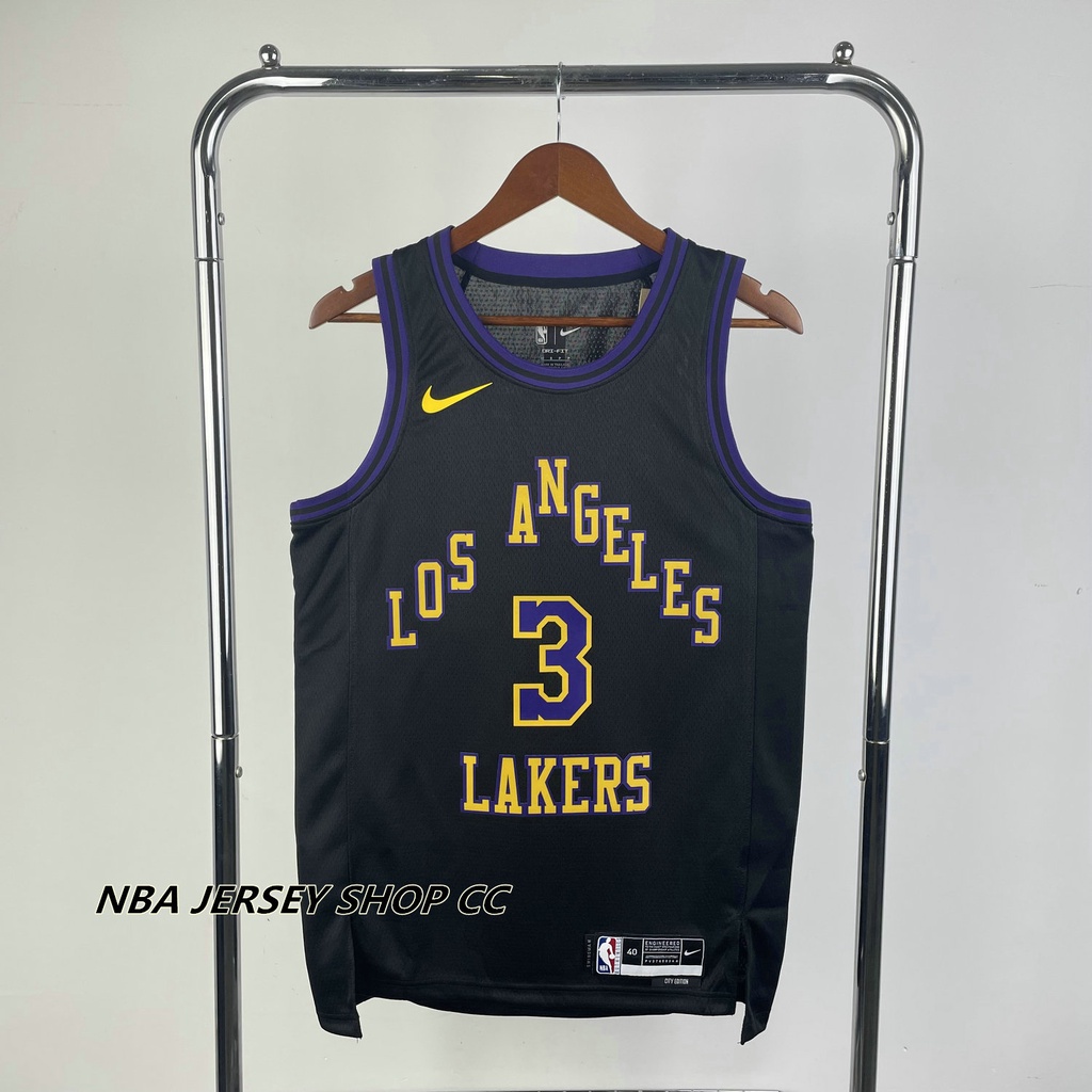 2023-24 Novos Lakers Originais Masculinos # 3 Anthony Davis Jersey City Edition Preto Swingman H Prensado A Calor