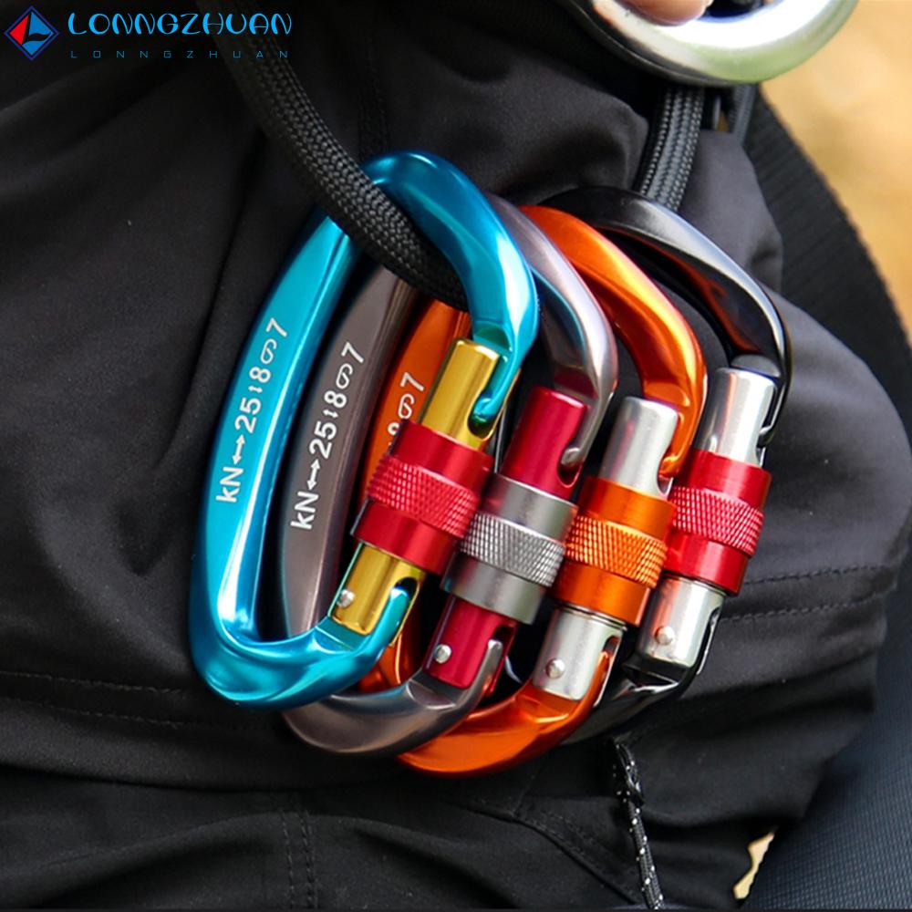 LONNGZHUAN 12/25Kn Profissional Mosquetão De Segurança Em Forma De D Alumínio Ferramenta De Ascensão Ao Ar Livre Alta Qualidade