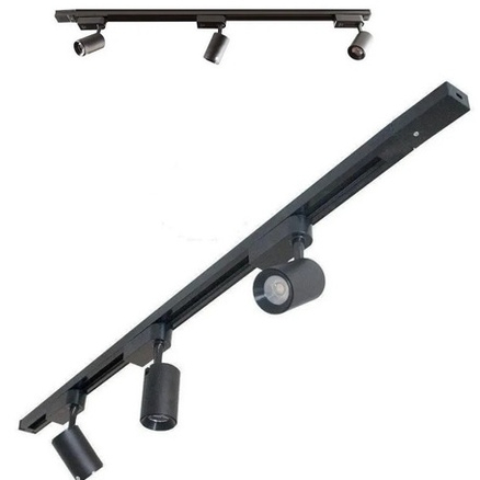 Kit Trilho Eletrificado 1 Metro Com 3 Spots Direcionavel Preto Led 7W 6500K