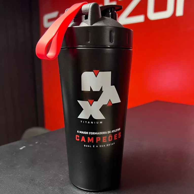 Coqueteleira Inox Preta ( LANÇAMENTO) 700mL Max Titanium e Probiótica