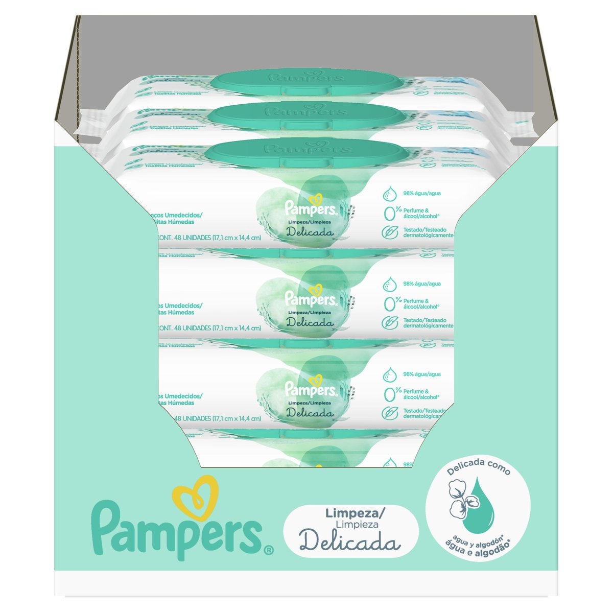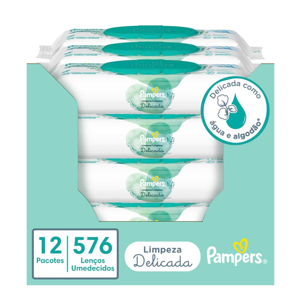 Lenços Umedecidos Pampers Limpeza Delicada - 12 pacotes de 48 unidades cada
