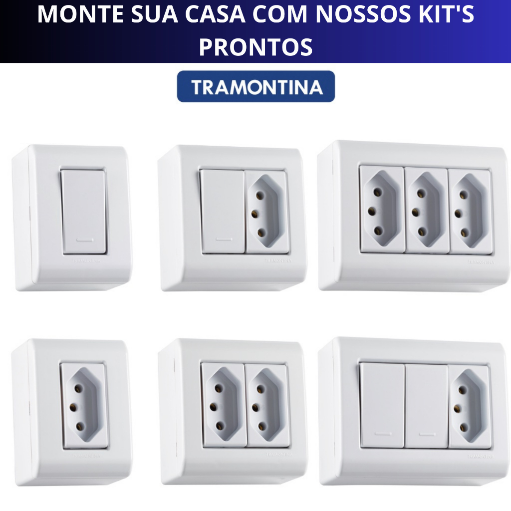 Tomadas e Interruptores Conjunto 4x2 Branca Conjunto Tomada e Conjunto Interruptor Aria Tramontina Monte Seu Kit