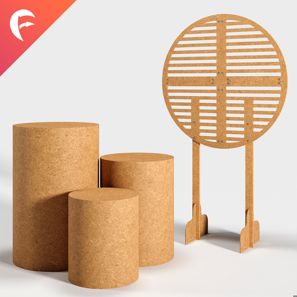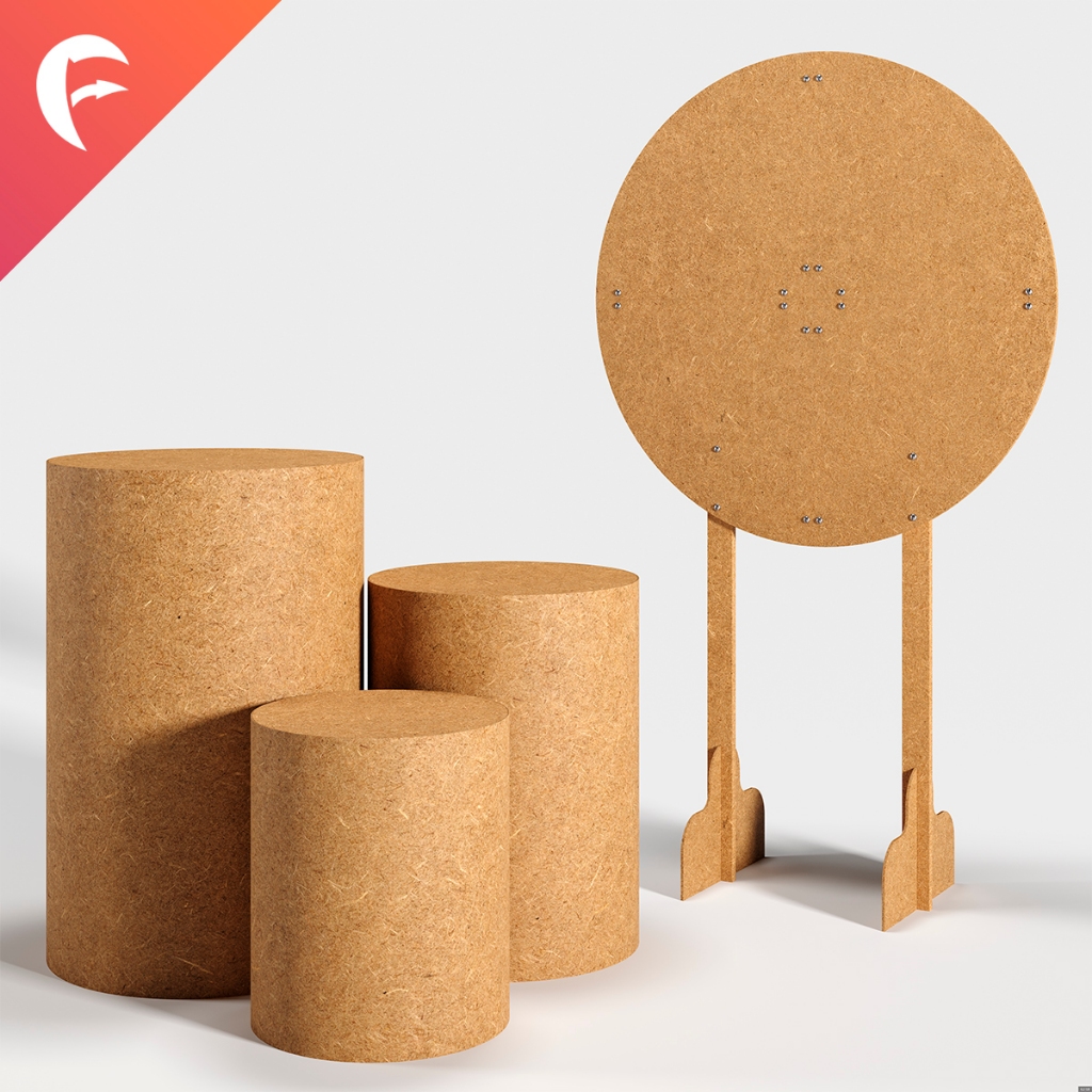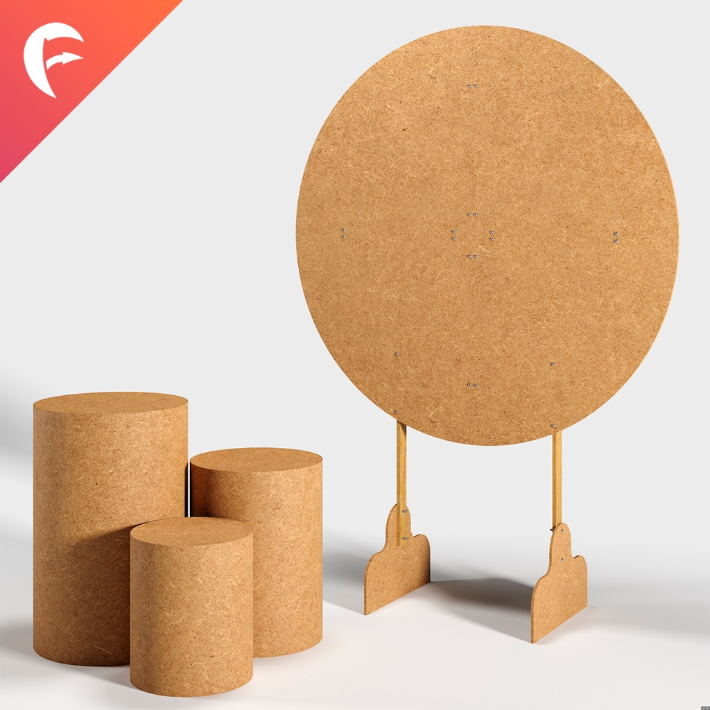 Conjunto Para Festa Mdf Cru Trio de Cilindro e Painel Redondo Pequeno
