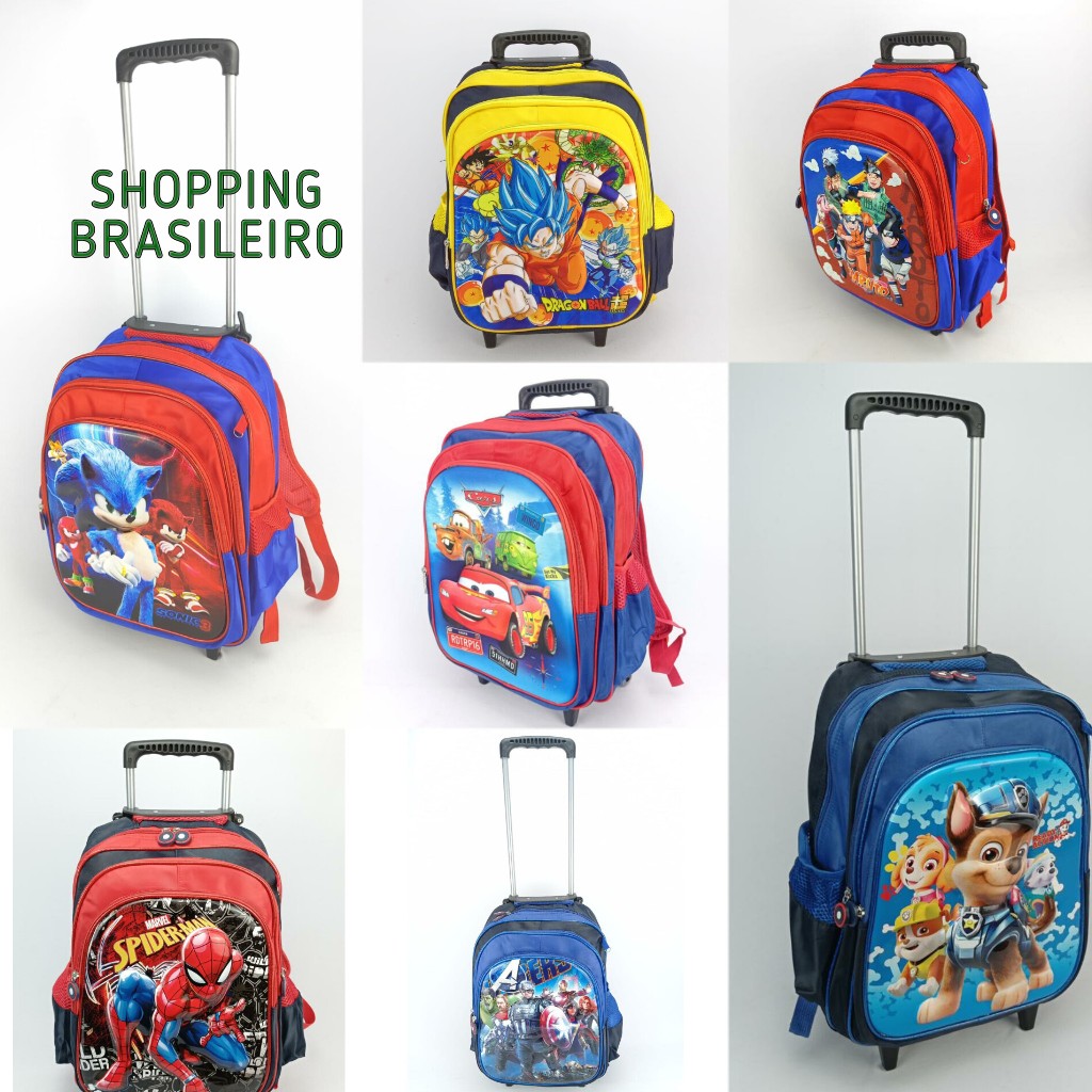 mochila escolar infantil para menino com rodinhas de desenhos animados carros / dragom boll z / patrulha canina / vingadores / homem aranha / sonic / dragon boll z