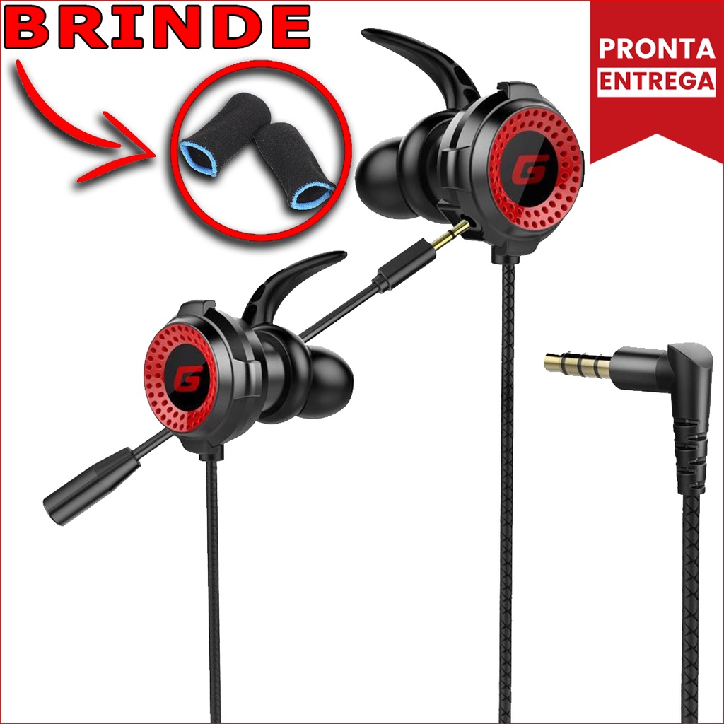 Fone de Ouvido Gamer Intra Auricular Headset com Microfone Para Celular e Computador In Ear Para Smartphone 2 Microfones