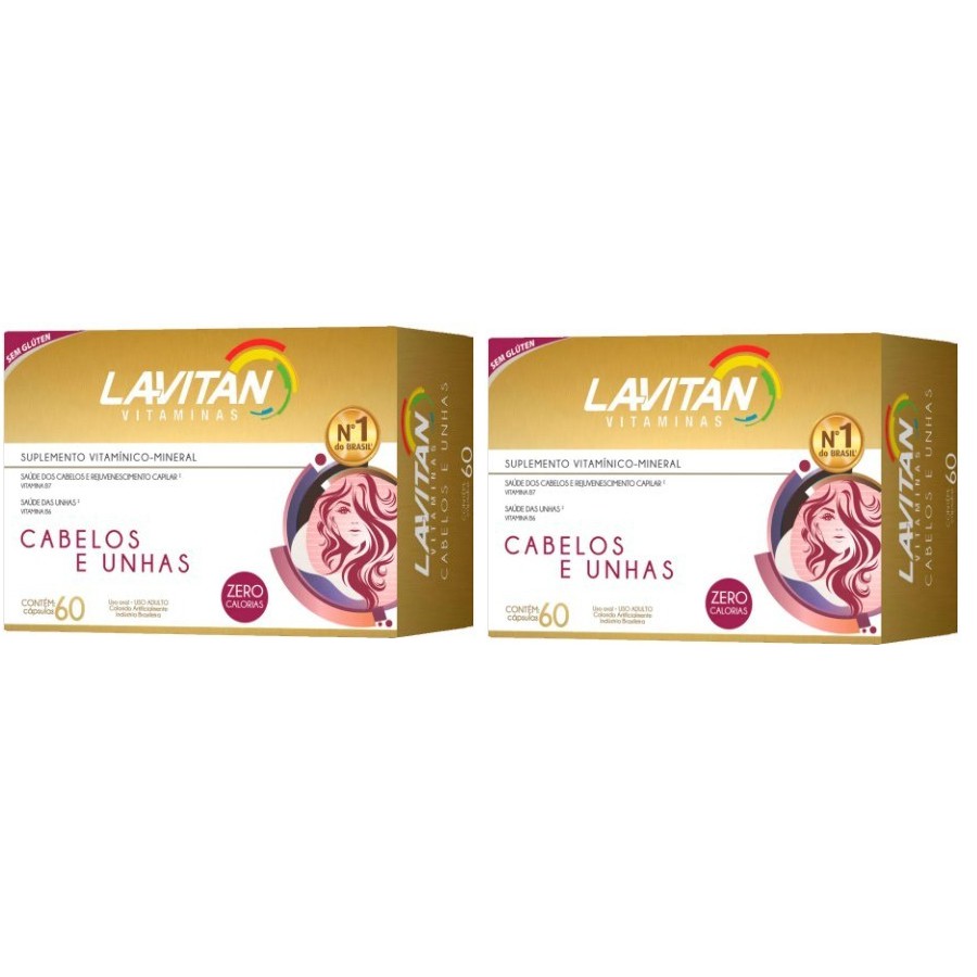 Kit com 2 Lavitan Hair Cabelos E Unha Biotina Cimed 60 Cápsulas