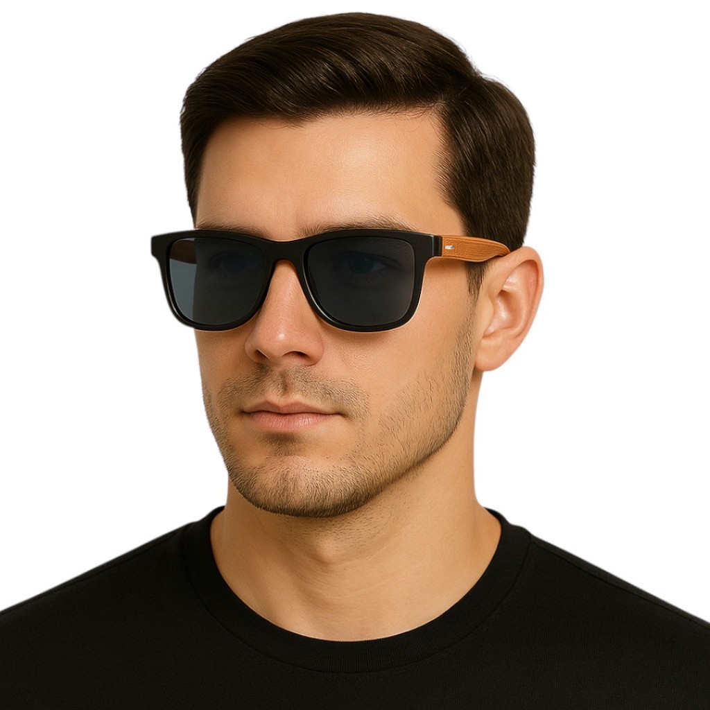 Óculos de Sol Masculino Polarizado Espelhado com marca UV400 Haste de Madeira Premium + Estojo