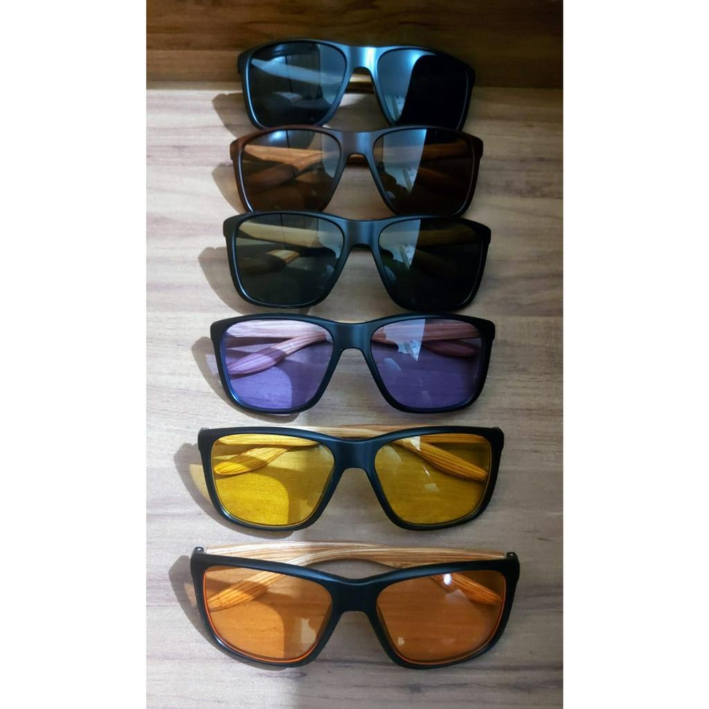 Óculos De Sol Haste Madeira Bambu QSVL UV 400 Polarizado