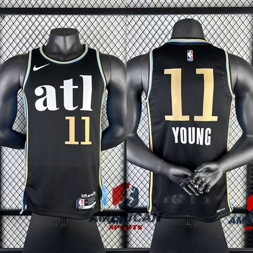 2023-24 City Camisa 2023NBA Atlanta Hawks 11 Trae Young Camiseta de Basquetebol Preto Jersey