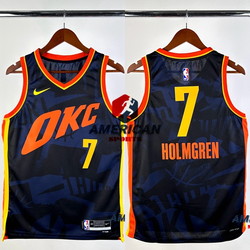 Homens 2023-24 Oklahoma City Thunder Camisa Chet Holmgren Marinha Azul Camiseta 2023NBA Basquetebol Jersey