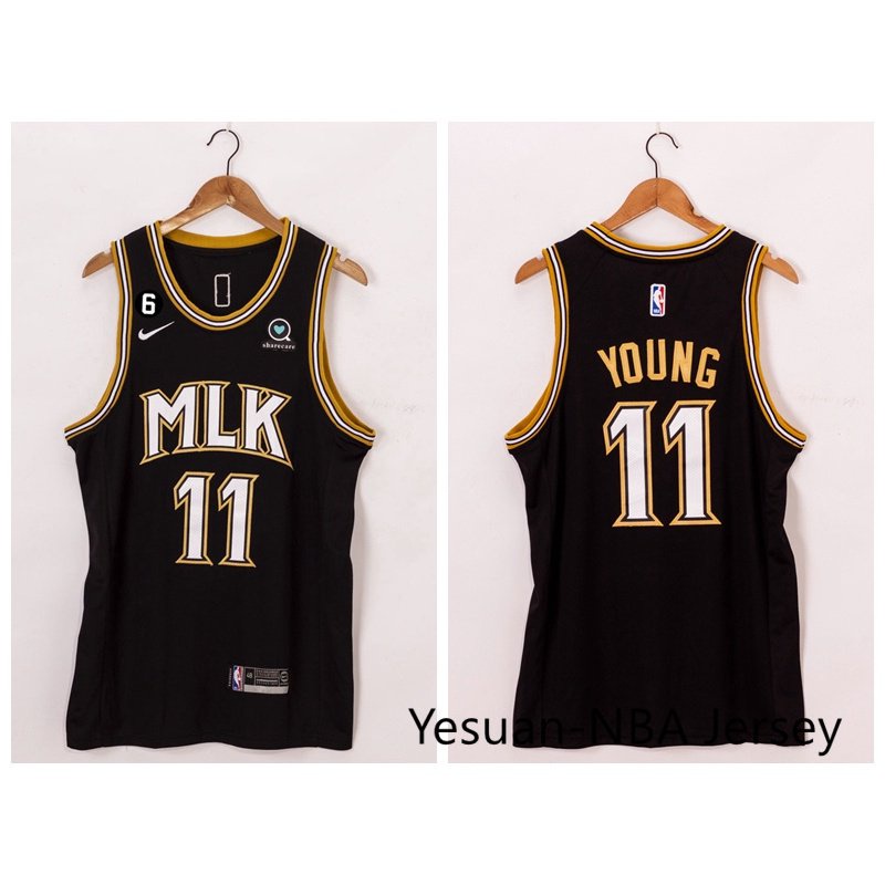 Homens Camisa 2023 NBA Atlanta Hawks #11 Trae Young Camiseta Basquetebol Preto Jersey