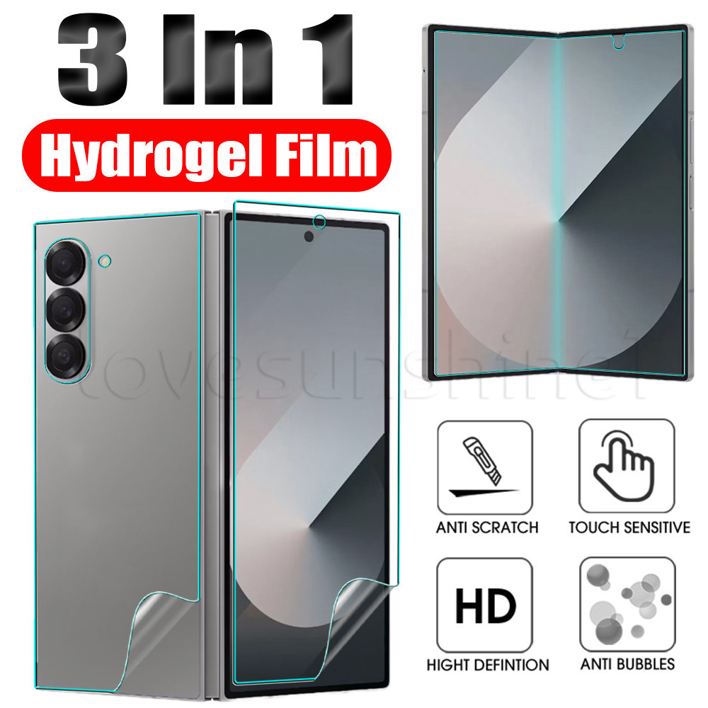 Protetor De Tela De Cobertura Total-Para Samsung Galaxy Z Fold 6 5-Película Protetora Interna + Externa + Traseira-TPU Macia , HD Transparente , Anti-Riscos Hidrogel 3 Em 1