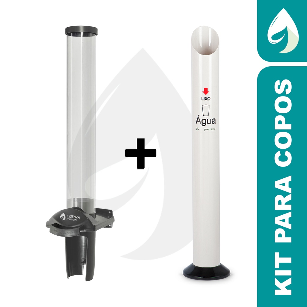 kit dispenser para copos descartáveis de agua 150 ml ate 200 ml automático mais lixeira de copos até 200ml