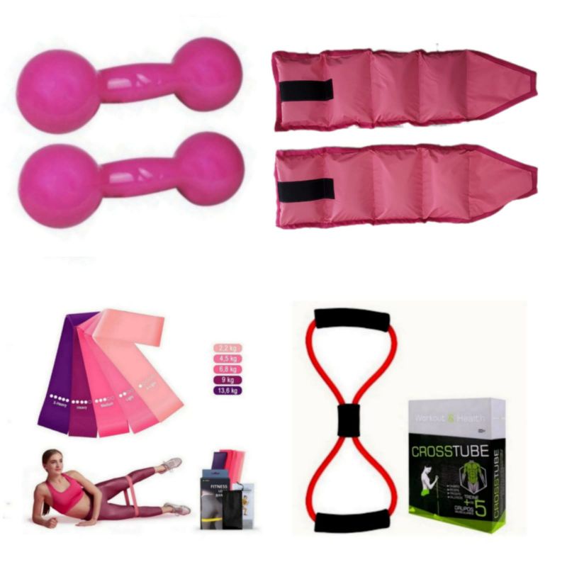 Kit Academia em Casa - Caneleira 2 Kg- Par + Colchonete + Kit Mini Band + Par Halter Peso 2 Kg
