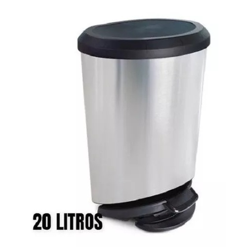 Lixeira Cesto Tipo Inox 20 Litros Com Tampa Com Pedal Prata Preto Label Plastico Automatica Para Banheiro Cozinha Quarto Escritório Cesta de Lixo Grande 20l Plástico Metalizado Plástica Lixeira Grande Para Cozinha kit Promoção Oferta