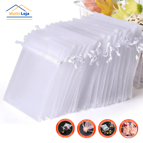 Kit 10, 50 ou 100 Un Saco Saquinho Organza Tule Saquinho 7x9 9x12 10x15 Branco - Festa Casamento