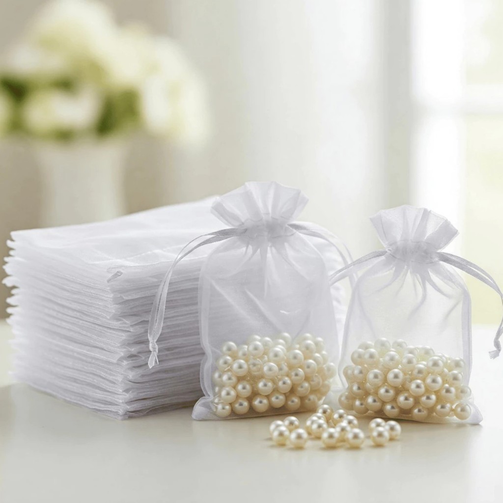kit 10/20/50/100 Unid Saco Saquinho Organza 7x9 9x12 10x15 13x18 17x23 20x30 20x35 Branco Lembrancinha festa Casamento