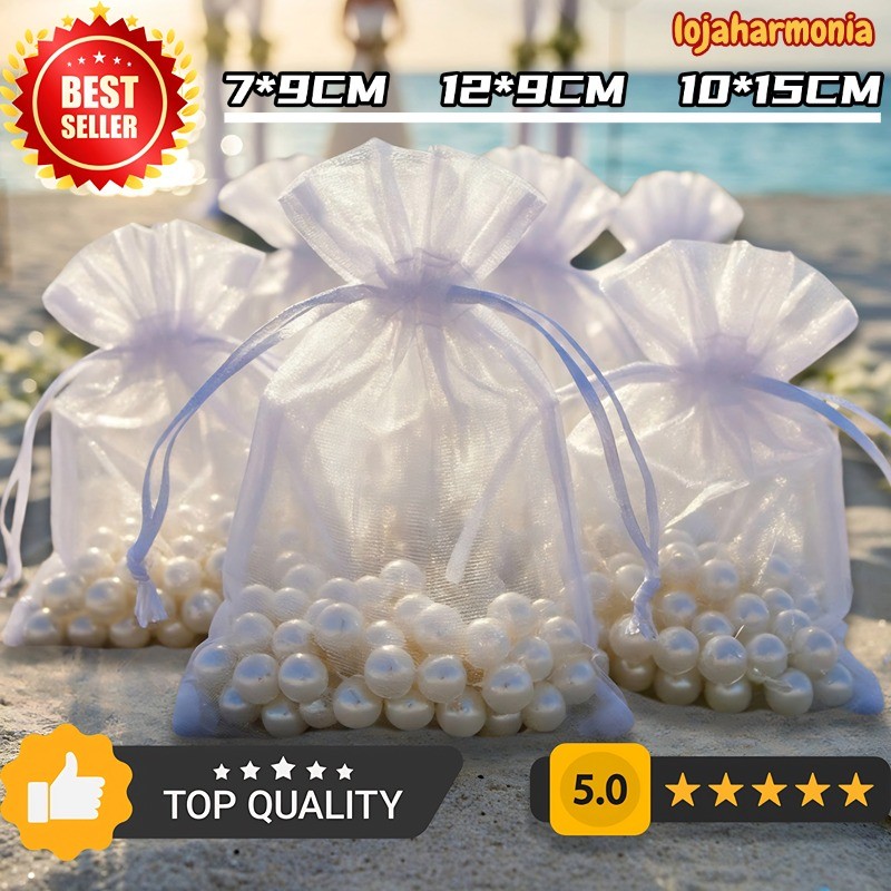 Kit 10/20/50/100 Un Saco Saquinho Organza Tule Saquinho 7x9 9x12 10x15 Branco Festa Casamento