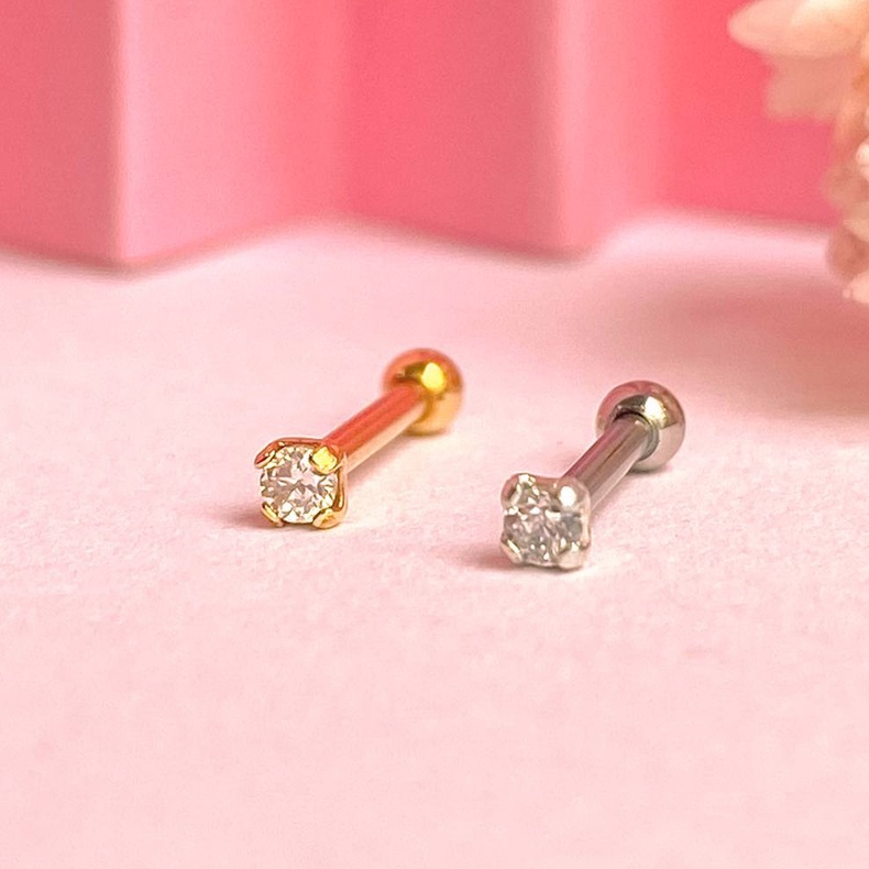 Piercing ponto de luz estilo labret para tragus/Hélix/Cartilagem - Prateado/Dourado