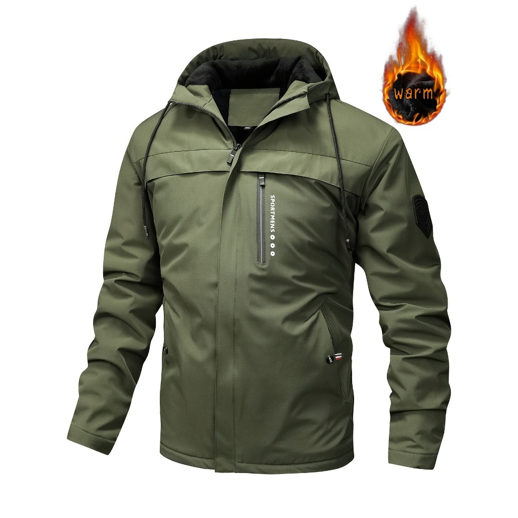 Jaqueta impermeável à prova d'água com capuz quente à prova de vento, Jaqueta de pesca para escalada masculina, Design de cor sólida da moda Rain & Anoraks