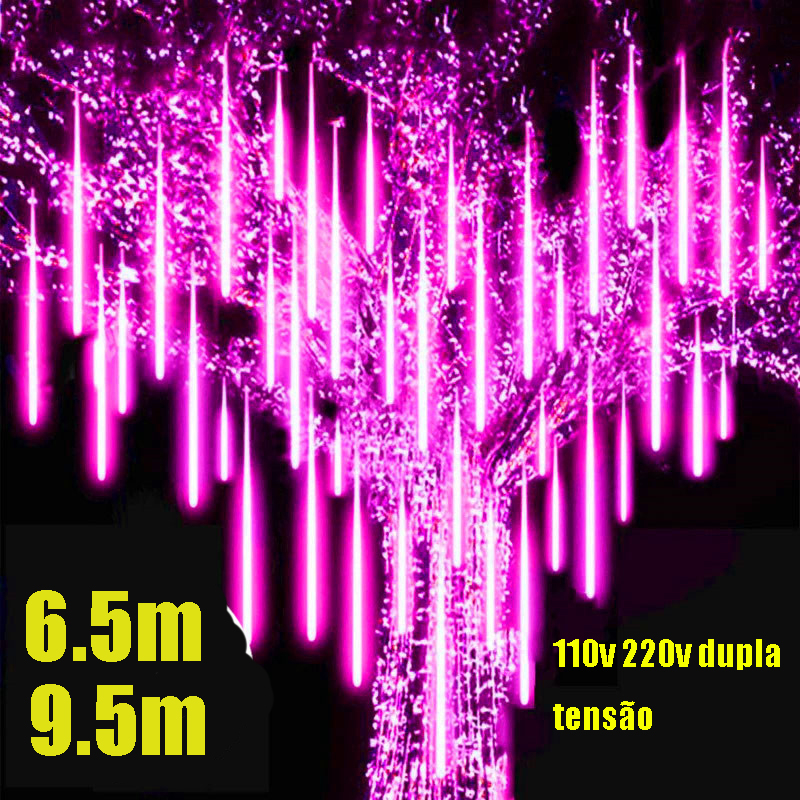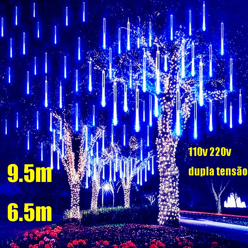 [Entrega 24 horas] 6.5m 9.5m led lâmpada de chuva de meteoro, ac110v-220v, adequado para árvore, pátio, jardim, Natal e decoração do partido