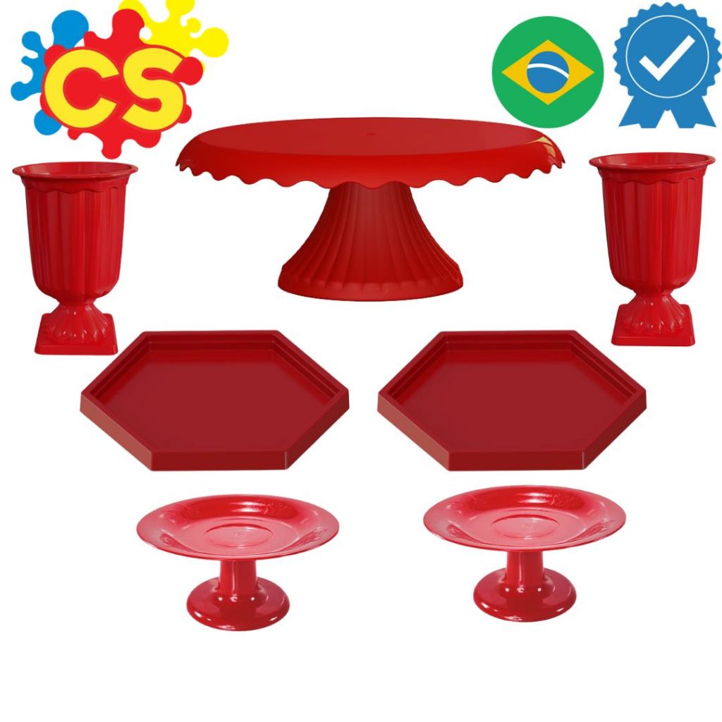 Kit Festa 1 Boleira Renda Cake 22cm + 2 Vasos Grego + 2 Mesinhas - (+11 cores)