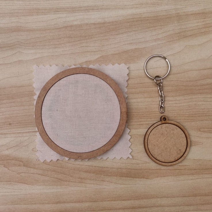 Kit Completo Mini Bastidor 3.5cm Chaveiro + Tecido Algodão Cru + Argola Corrente