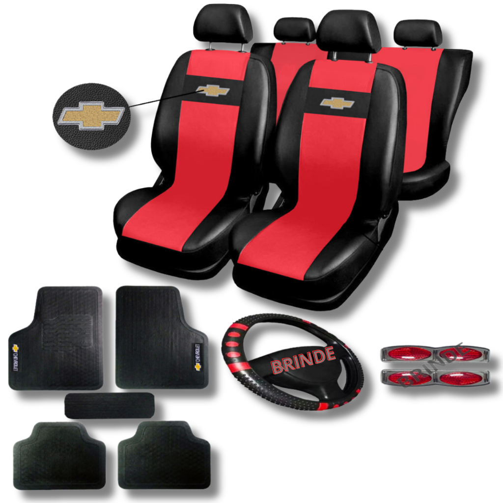kit jogo de capas para banco de carro automotivo tapete volante palhetas limpador gm corsa celta agile ônix prisma couro sintético colorido