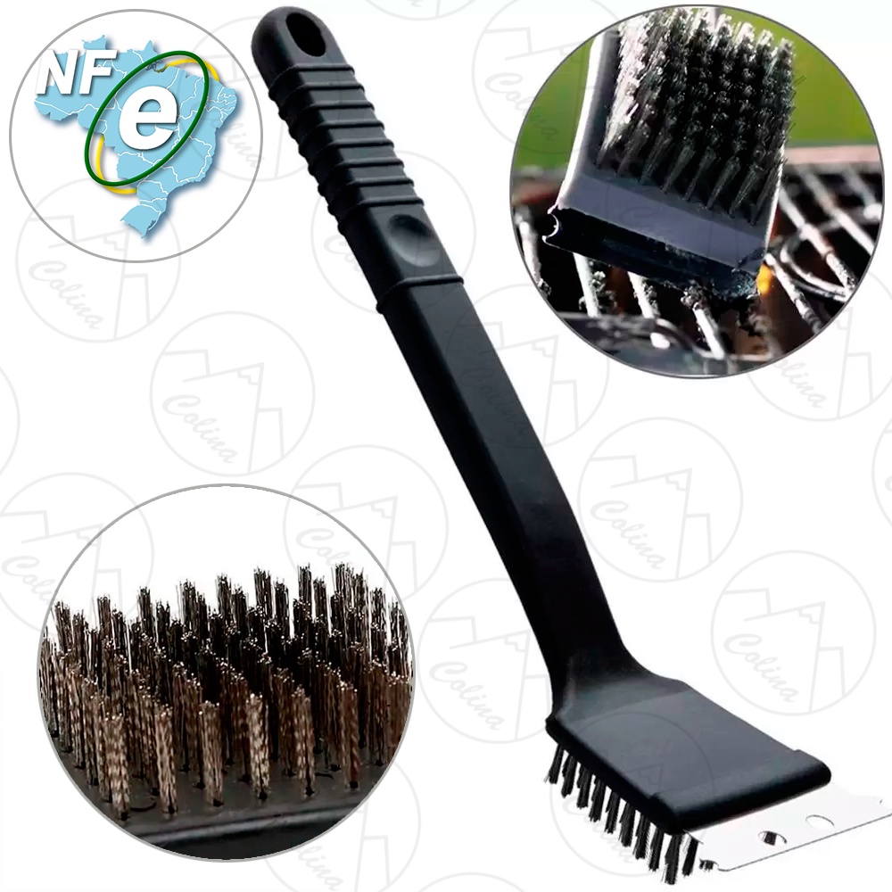 Escova De Aço Inox Para Limpar Grelha Churrasqueira Com Lâmina Raspadora