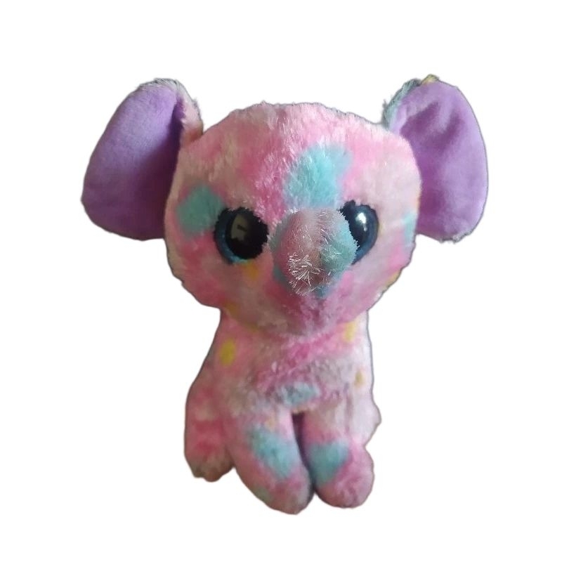 Brinquedo Boneco Pelúcia - INSPIRAÇÃO TY Beanie Boos - Olho Glitter - Elefante Rosa e Roxo Olhos Azuis