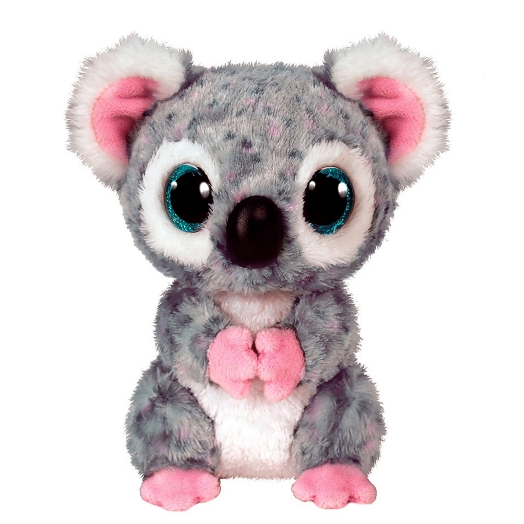 Boneco de Pelúcia TY Beanie Boos Olhos Grandes Coala Cinza Rosa Toyng Karli
