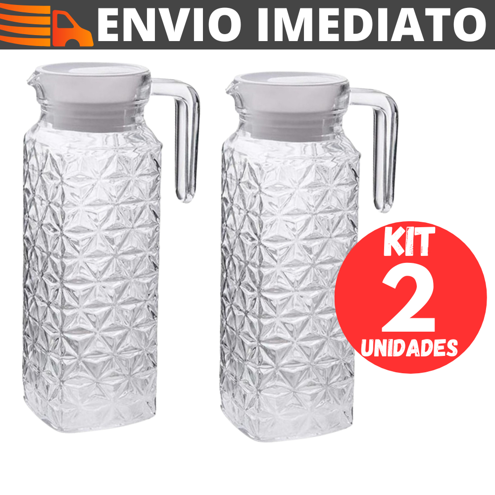 Kit 2 Jarra de Vidro Resistente para Porta de Geladeira Diamante 1 Litro com Tampa
