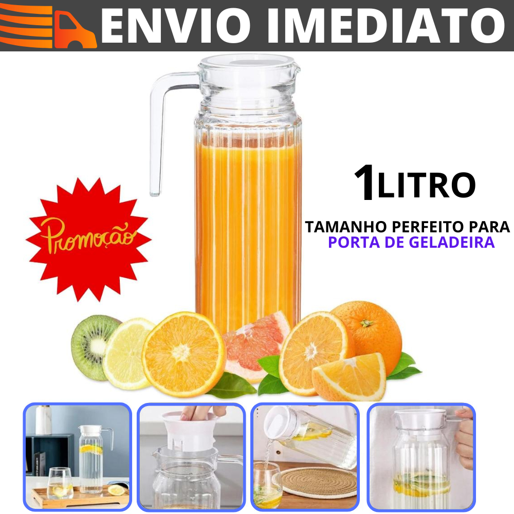 Kit 2 Jarra De Vidro Com Tampa Suiça 1 Litros Grande Água Suco Para Porta Geladeira