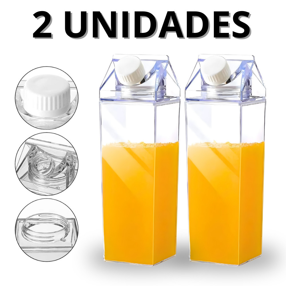 Kit 2 Garrafa De Acrílico Para Leite 1L Garrafinha De Água Transparente Suco Chá Com Tampa Geladeira