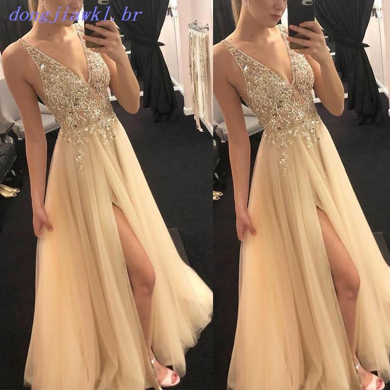 Vestido Feminino De Lantejoulas Com Decote Em V De Dama De Honra Sem Mangas Longo Vestidos De Bainha Feminina Longa Noite