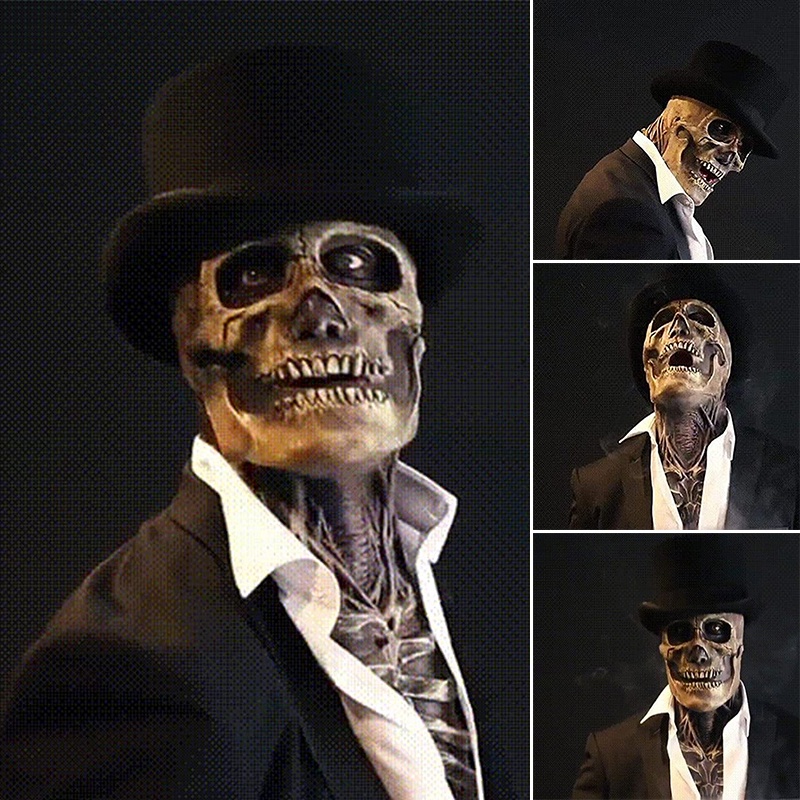 Máscara De Halloween Caveira De Cabeça Inteira Capacete De Látex Horror Assustador Cosplay Decoração De Festa