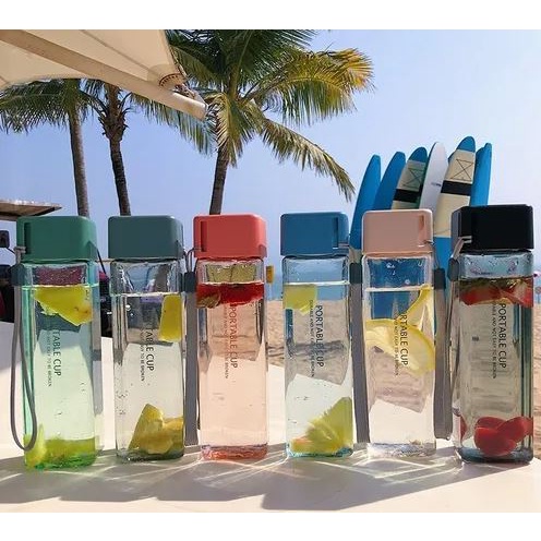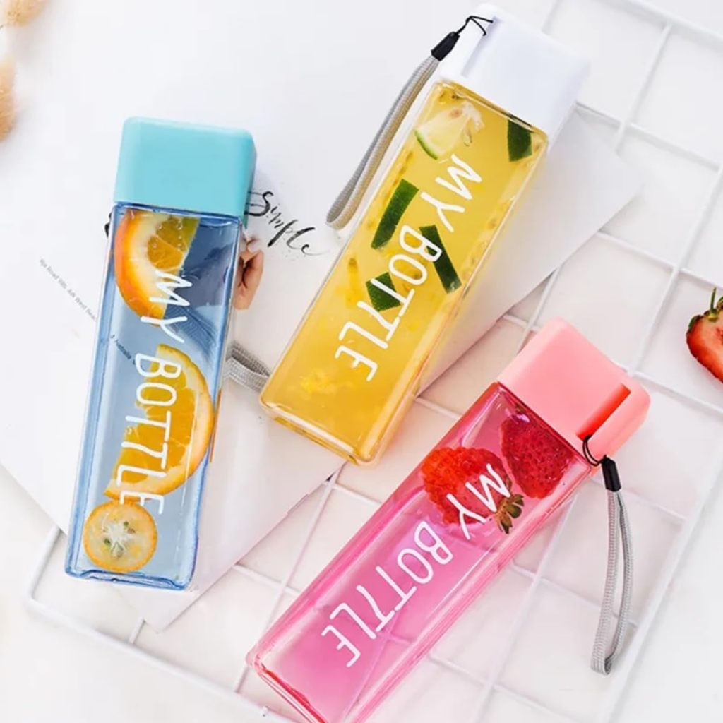 Garrafa Squeeze Plástica Quadrada 500ml Com Alça Com Tampa Rosca Agua Suco E Bebidas Multiuso 19x5cm KLSZ5